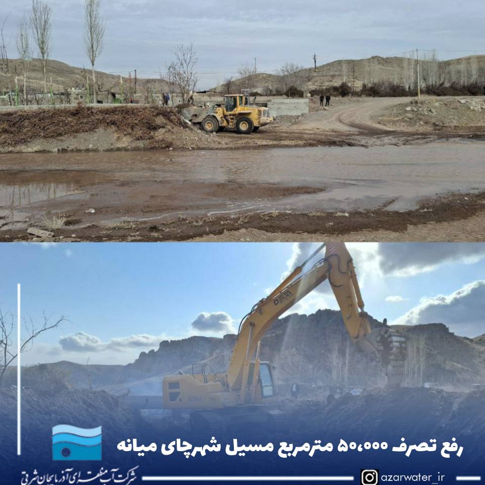 مدیر امور منابع آب شهرستان میانه از رفع تصرف چندین مسیل منتهی به رودخانه شهرچای میانه به مساحت ۵۰ هزار مترمربع خبر داد.