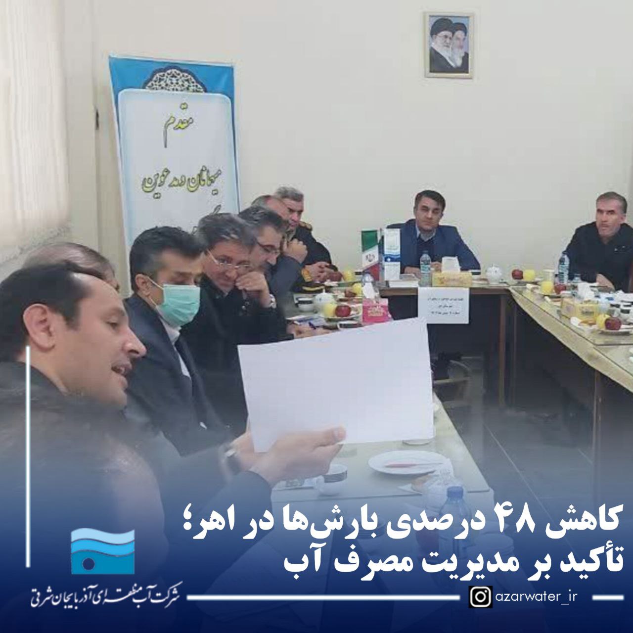در هفتمین جلسه شورای حفاظت از منابع آب شهرستان اهر که در محل سد ستارخان برگزار شد، بر لزوم مدیریت مصرف آب بهویژه در بخشهای کشاورزی، صنعت و شرب تأکید شد.
