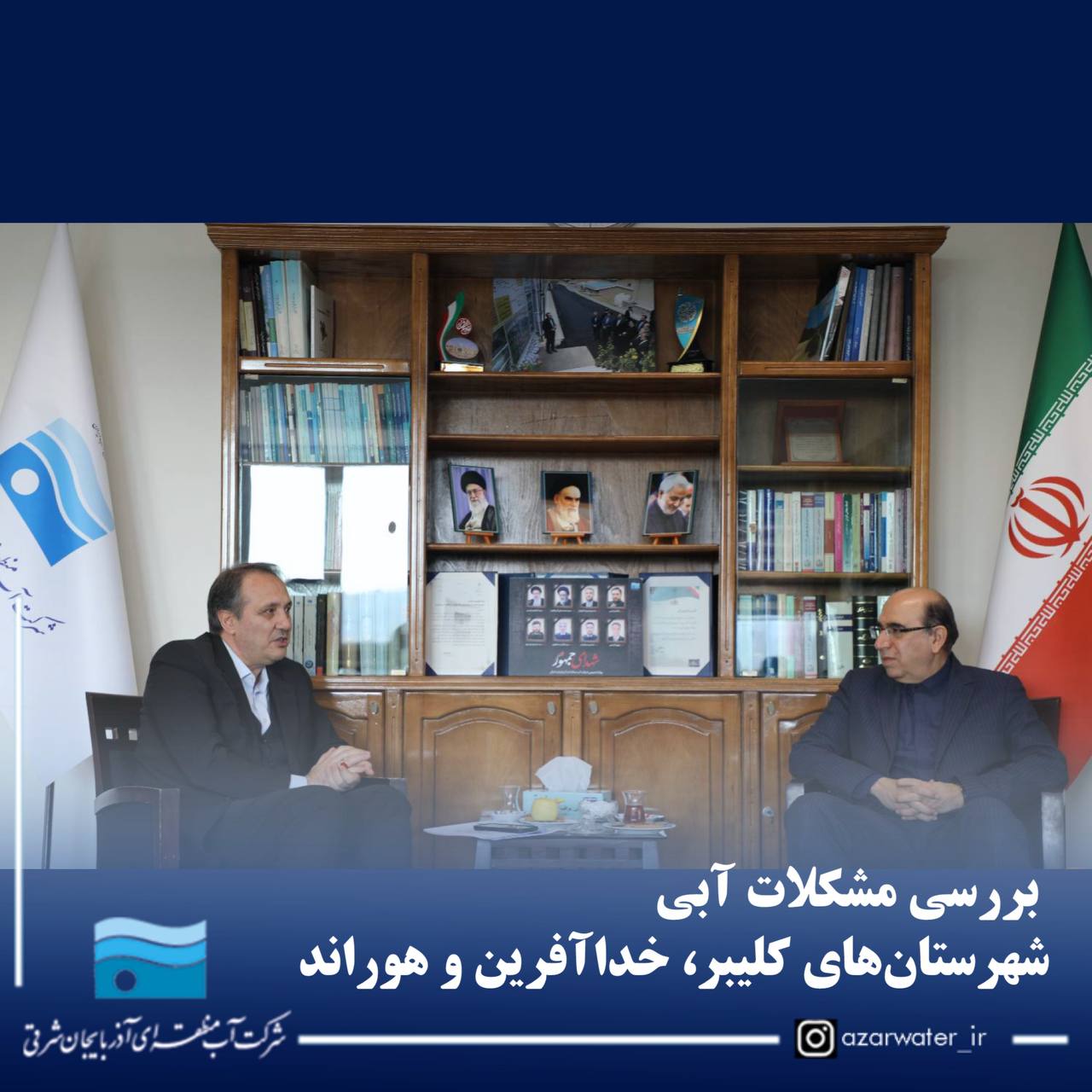 نماینده مردم کلیبر، خداآفرین و هوراند در دیدار با مدیرعامل آب منطقهای آذربایجان شرقی، مسائل و چالشهای حوزه آب این شهرستانها بررسی و بر لزوم تسریع در اجرای طرحهای آبی تأکید شد.