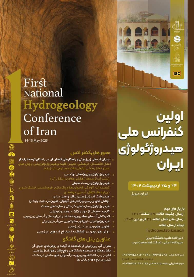 اولین کنفرانس هیدروژئولوژی ایران روزهای ۲۴ و ۲۵ اردیبهشت ۱۴۰۴ به میزبانی پژوهشکده محیطزیست دانشگاه تبریز برگزار میشود. این رویداد علمی با هدف ارائه جدیدترین پژوهشها در حوزه هیدروژئولوژی و افزایش آگاهی مسئولان و جامعه درباره اهمیت آبهای زیرزمینی شکل گرفته است.