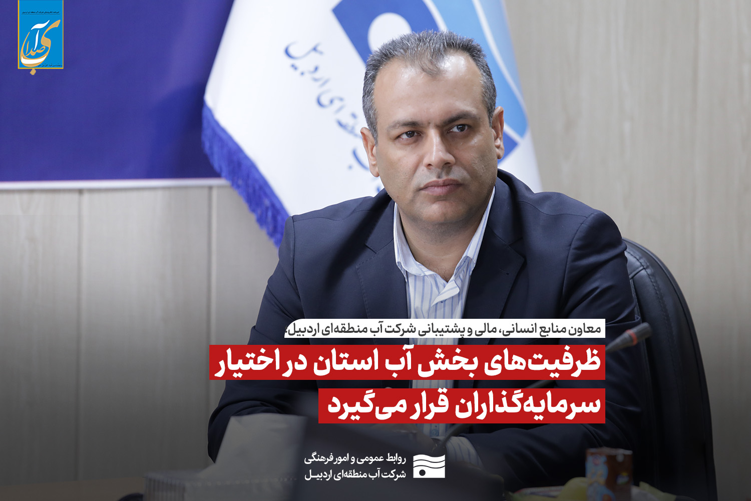معاون منابع انسانی، مالی و پشتیبانی شرکت آب منطقهای اردبیل : امکانات و ظرفیتهای بخش آب استان شناسایی شده و به سرمایهگذاران واگذار میشود.