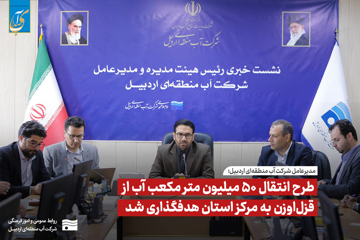 مدیرعامل شرکت آب منطقه ای اردبیل گفت: برای تامین آب آشامیدنی شهرستانهای اردبیل، خلخال و کوثر، انتقال آب به میزان ۵۰ میلیون متر مکعب از رودخانه قزلاوزن در استان هدفگذاری شده است.