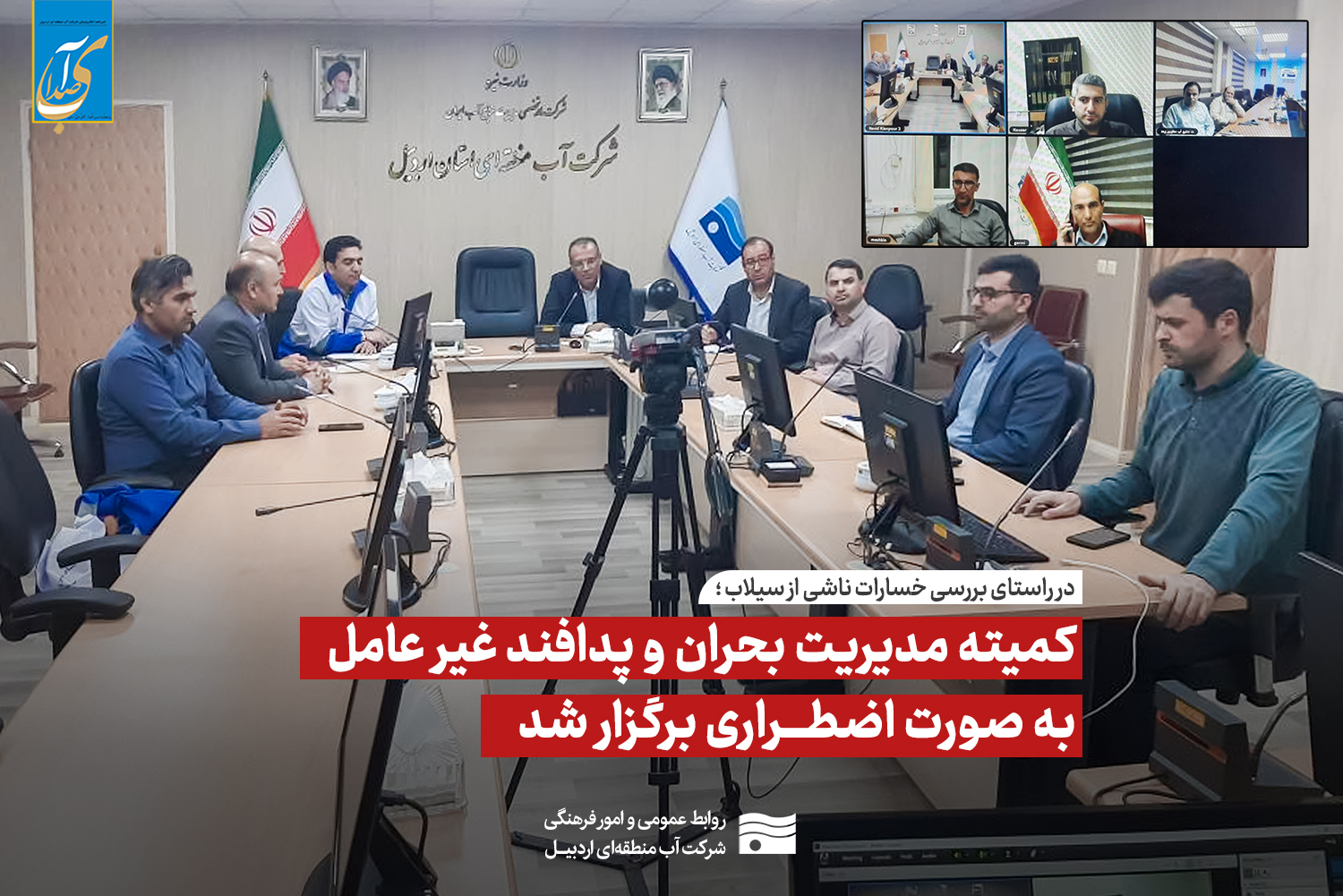 عضو هیات مدیره و معاون منابع انسانی، مالی و پشتیبانی شرکت آب منطقهای اردبیل: در راستای بررسی خسارات ناشی از سیلاب کمیته مدیریت بحران و پدافند غیر عامل به صورت اضطـــراری و شبانه برگزار شد.
