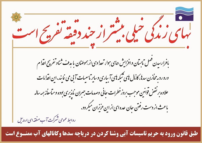 مدیر دفتر بهره برداری و نگهداری از تاسیسات آبی و برقابی شرکت آب منطقهای اردبیل گفت: با اوج گرفتن گرما همه ساله مردم برای شنا کردن در پشت دریاچه سدها و کانال های آبی روی می آورند که خطر غرق شدن جان آنها را تهدید می کند.