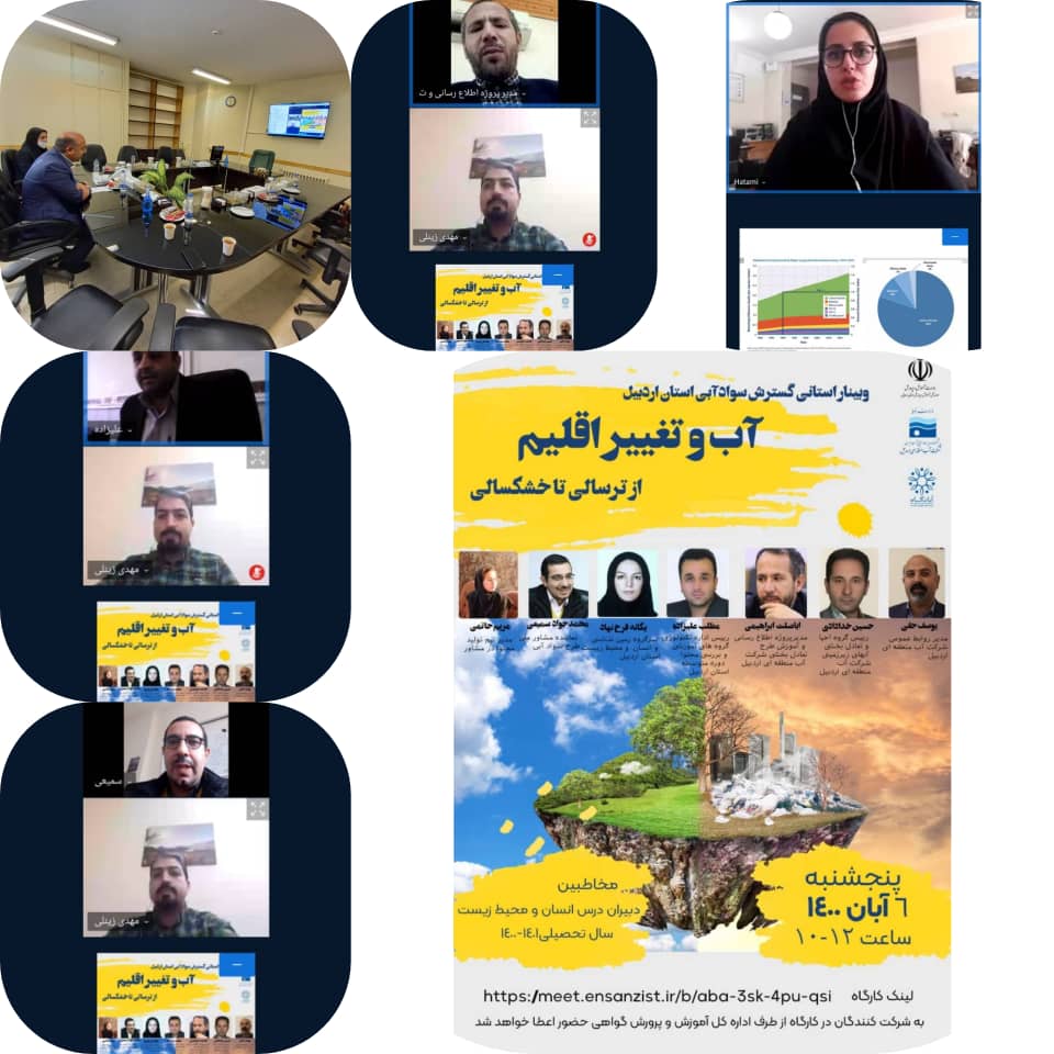 با حضور دبیران انسان و محیط زیست سراسر استان کارگاه و نشست گسترش سواد آبی استان اردبیل با محوریت آب و تغییراقلیم، از ترسالی تا خشکسالی برگزار شد.