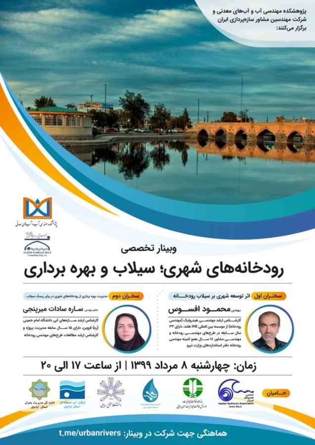 با مشارکت شرکت آب منطقه ای اردبیل و چند دستگاه اجرایی و دانشگاهی و به همت پژوهشکده مهندسی آب و آب های معدنی و شرکت مهندسین مشاور سازه پردازی ایران وبینار تخصصی رودخانه های شهری؛ سیلاب و بهره برداری برگزار می شود.