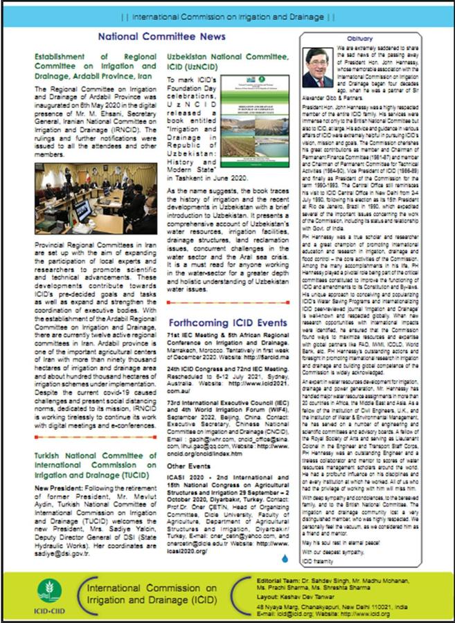 خبر تاسیس کمیته منطقه ای آبیاری و زهکشی استان اردبیل در نشریه کمیسیون بین المللی آبیاری و زهکشی (ICID) که هفدهم اردیبهشت ماه سالجاری فعالیت خود را شروع کرده است، انعکاس یافت.