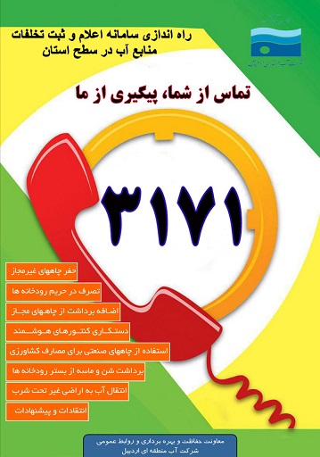 رئیس گروه طرح احیا و تعادل بخشی شرکت آب منطقه ای اردبیل گفت: سامانه ۳۱۷۱ پل ارتباطی مابین شرکت آب منطقه ای اردبیل و ارباب رجوع و بهره برداران و متقاضیان منابع آبی است.