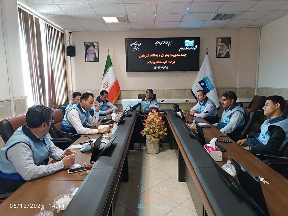 جلسه مدیریت بحران و پدافند غیرعامل با حضور مدیرعامل شرکت آب منطقهای ایلام و سایر اعضای کمیته بحران شرکت به منظور بررسی و تحلیل وضعیت موجود و راهکارهای مقابله با بحرانها و تهدیدات احتمالی برگزار شد.