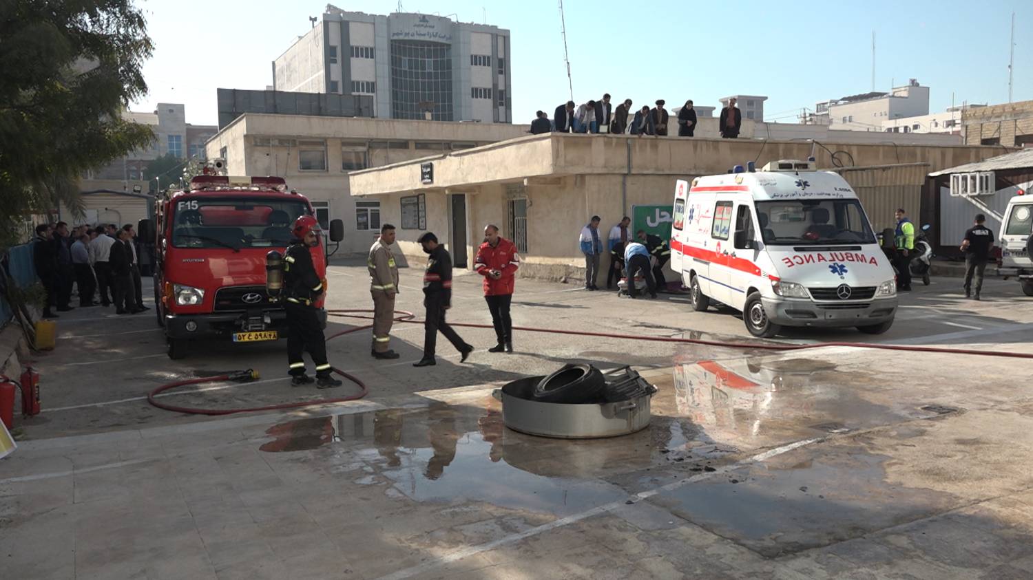 برگزاری مانور آموزشی و عملیاتی اطفای حریق و امداد و نجات و خروج اضطراری در شرکت آب منطقه‌ای بوشهر