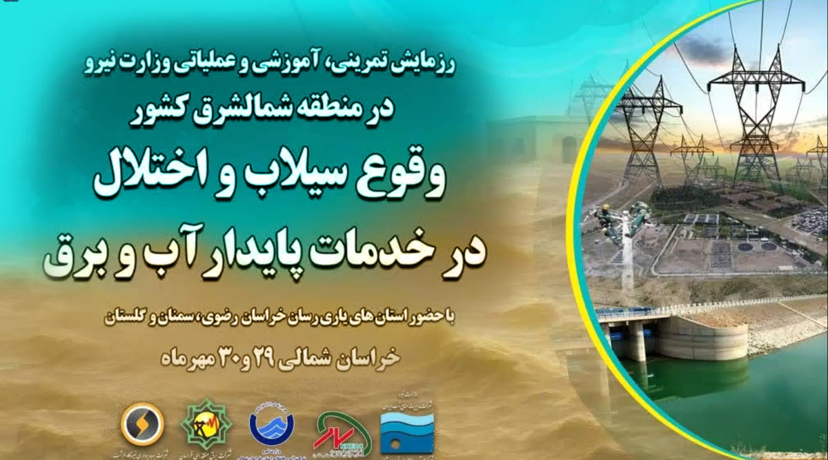 رزمایش تمرینی، آموزشی و عملیاتی وزارت نیرو در منطقه شمال شرق کشور با محوریت استان خراسان شمالی و استانهای یاریرسان خراسان رضوی، گلستان و سمنان در تاریخ ۲۹ و ۳۰ مهر ماه با موضوع وقوع سیلاب و اختلال در خدمات پایدار آب و برق، برگزار میشود.