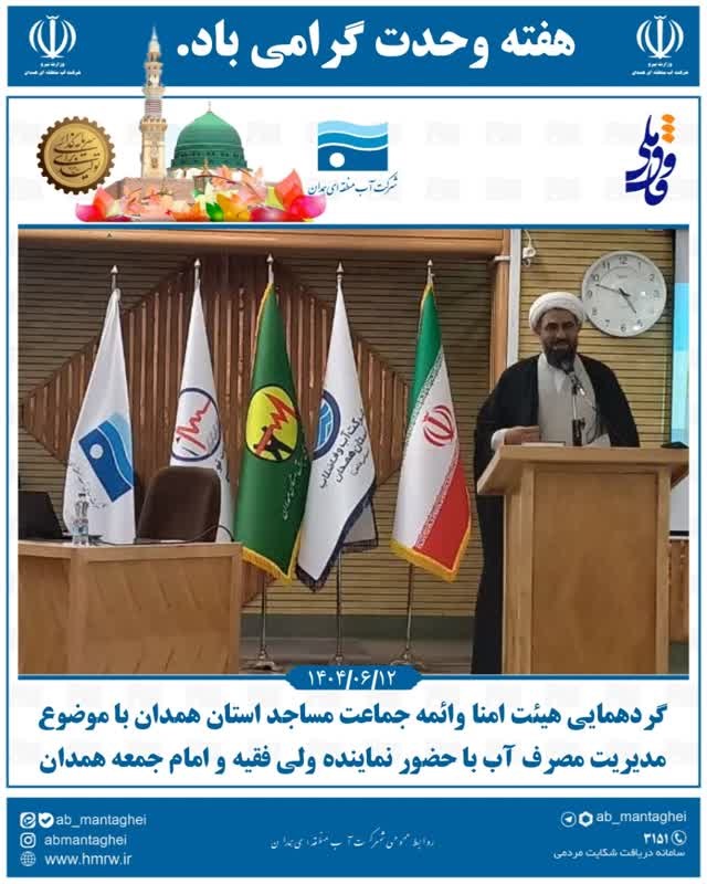 نماینده ولی فقیه در استان و امام جمعه همدان گفت: ائمه جماعات و هیئت امنا نقش مهمی در مدیریت مصرف آب دارند، انتظار میرود که متولیان مساجد در کنار فعالیتهای عبادی، در زمینه فرهنگسازی مصرف صحیح هم فعال باشند .