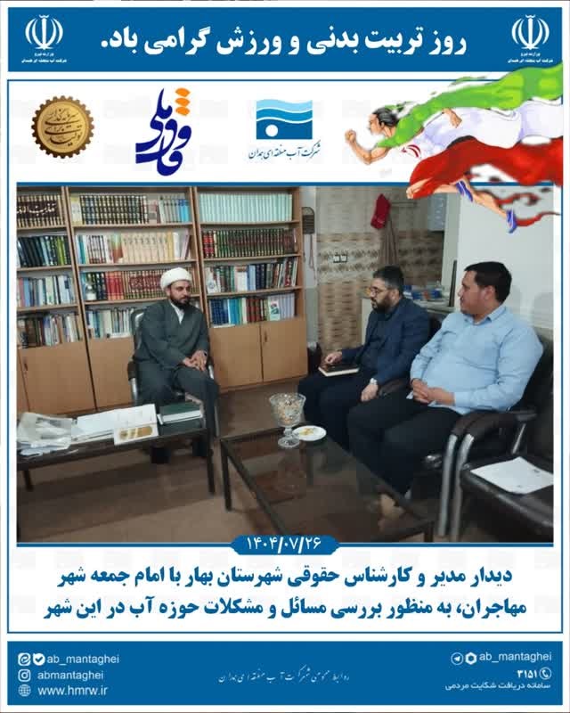 در راستای بررسی مسائل و چالشهای منابع آبی در منطقه مهاجران، مدیر و کارشناس حقوقی اداره منابع آب شهرستان بهار با امامجمعه این شهر دیدار و گفتوگو کردند.