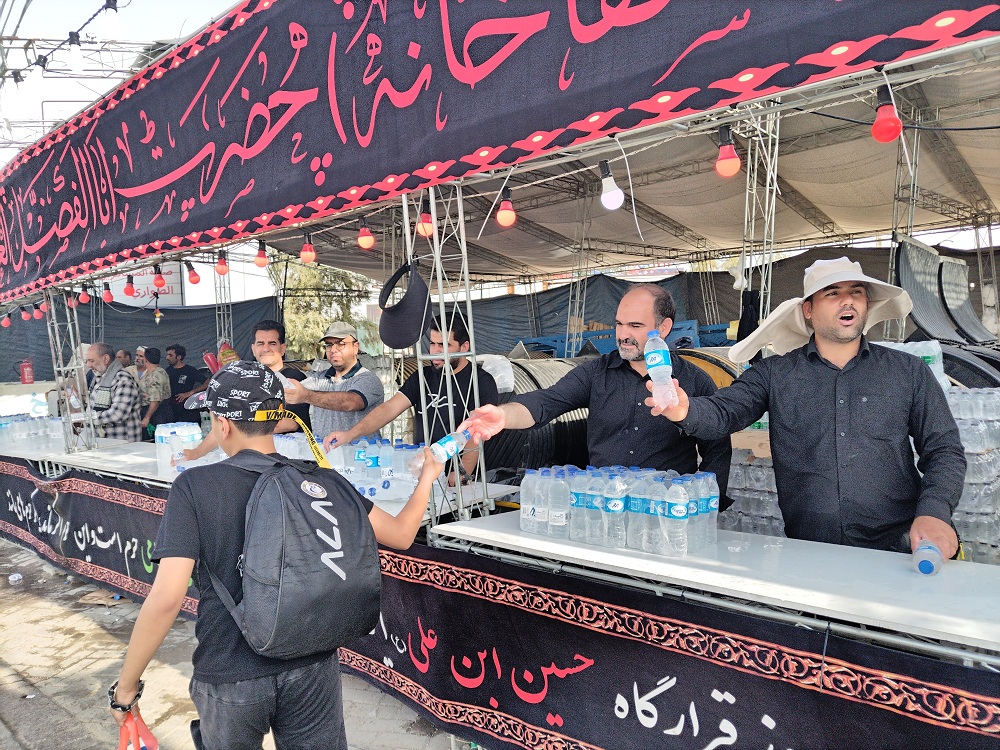 تیمی از همکاران شرکت آب منطقهای یزد با استقرار در موکب شرکت مدیریت منابع آب ایران در پایانه مرزی مهران، اقدام به توزیع آب بستهبندی شده میان زائران کردند.
