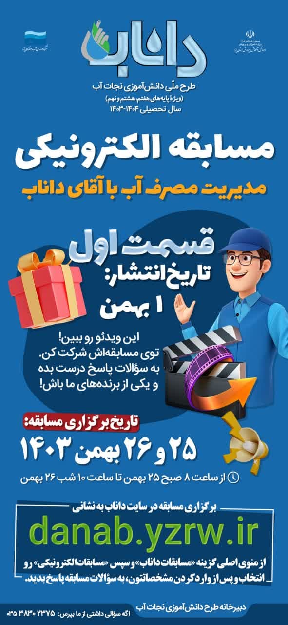 نخستین ویدئو کلیپ آموزشی «مدیریت مصرف آب با آقای داناب» توسط شرکت آب منطقهای یزد منتشر شد.