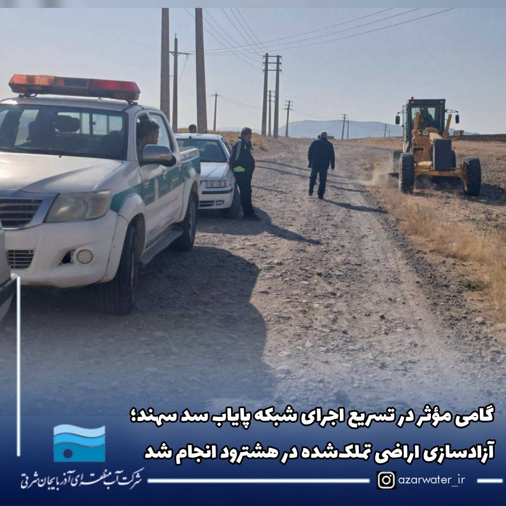 با همکاری عوامل اجرایی طرح شبکه پایاب سد سهند، همراهی مدیر منابع آب شهرستان هشترود و هماهنگی دادستان و پاسگاه نظرکهریزی، اراضی تملکشده این طرح بهمنظور اخذ اسناد تکبرگ مالکیت آزادسازی شد.