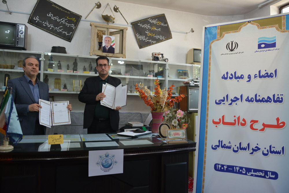 تفاهمنامه همکاری شرکت آب منطقهای و اداره کل آموزش و پرورش خراسان شمالی برای اجرای طرح دانشآموزی نجات آب موسوم به «داناب» در استان در سال تحصیلی جاری برای پانزدهمین سال متوالی، در نشستی با حضور مدیرعامل شرکت آب منطقهای و مدیرکل آموزش و پرورش امضا شد.