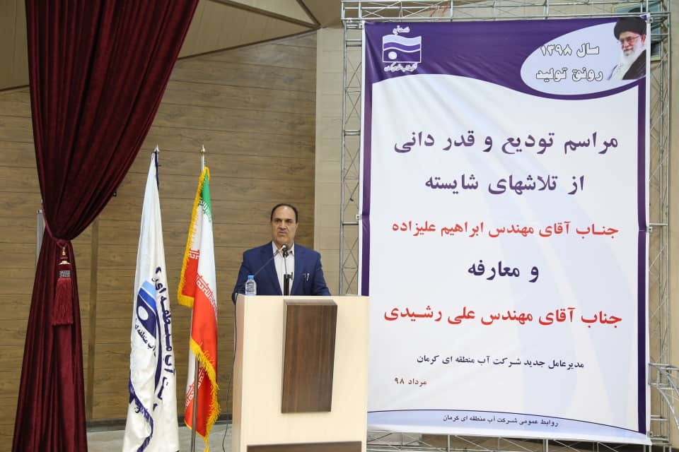 وی ادامه داد: مهندس علیزاده همواره در پست هایی که داشتند به مقوله مهم آب برای مردم استان کرمان می پرداختند و برای مهندس رشیدی آرزوی موفقیت دارم.