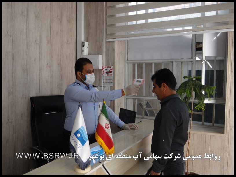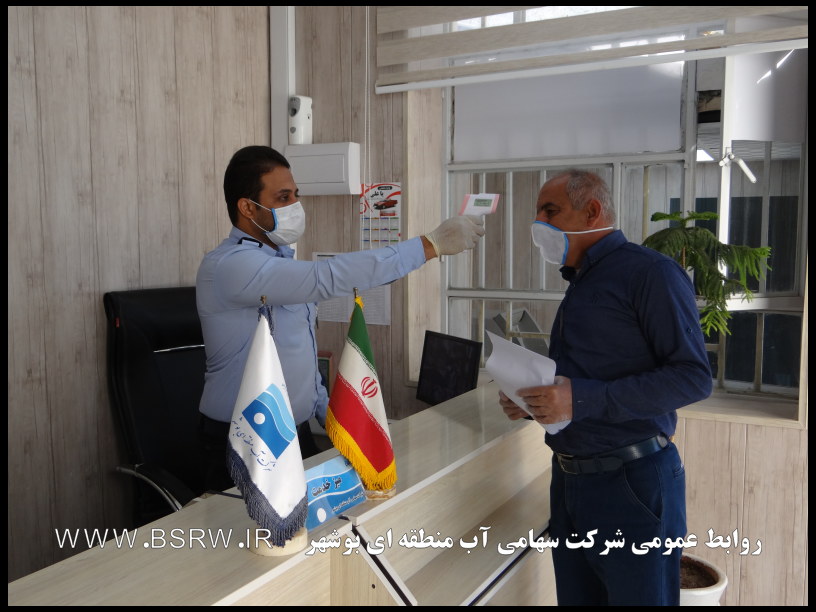 رئیس گروه مدیریت بحران و پدافند غیرعامل شرکت سهامی آب منطقه ای بوشهر خاطرنشان کرد: انجام تست تب سنجی به صورت مستمر از کلیه همکاران و مراجعین در حال انجام است و همچنین ورود همکاران و اربابان رجوع بدون ماسک به شرکت ممنوع می باشد.