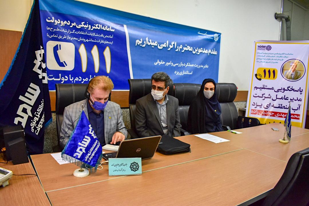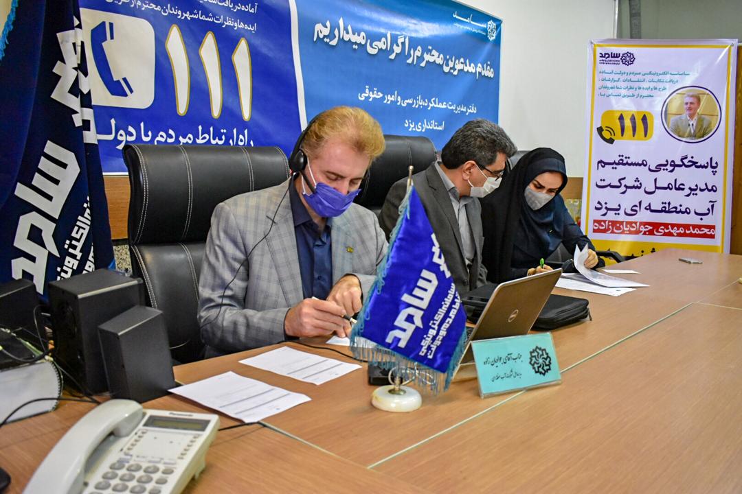 به گزارش روابط عمومی شرکت آب منطقه ای یزد، در راستای اجرای نظام نامه مدیریت ارتباطات مردمی در بستر سامد و تبیین اهداف دولت تدبیر و امید و تحقق مصادیق حقوق شهروندی، صبح امروز مدیرعامل شرکت آب منطقه ای یزد به مدت ۲ ساعت در محل سامانه سامد حضور یافت و از طریق خط ارتباطی ۱۱۱ به سوالات و چالش های مختلف تعدادی از مردم در خصوص مسائل بخش آب پاسخ داد.