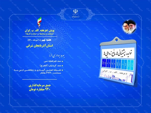 این گزارش میافزاید، آخرین پروژه آماده افتتاح در آذربایجانشرقی، شبکه پایاب یکانات به مساحت 3360 هکتار است که توسط ایستگاههای پمپاژ از طریق رودخانه ارس، در شهرستان مرند سیراب خواهد شد.
