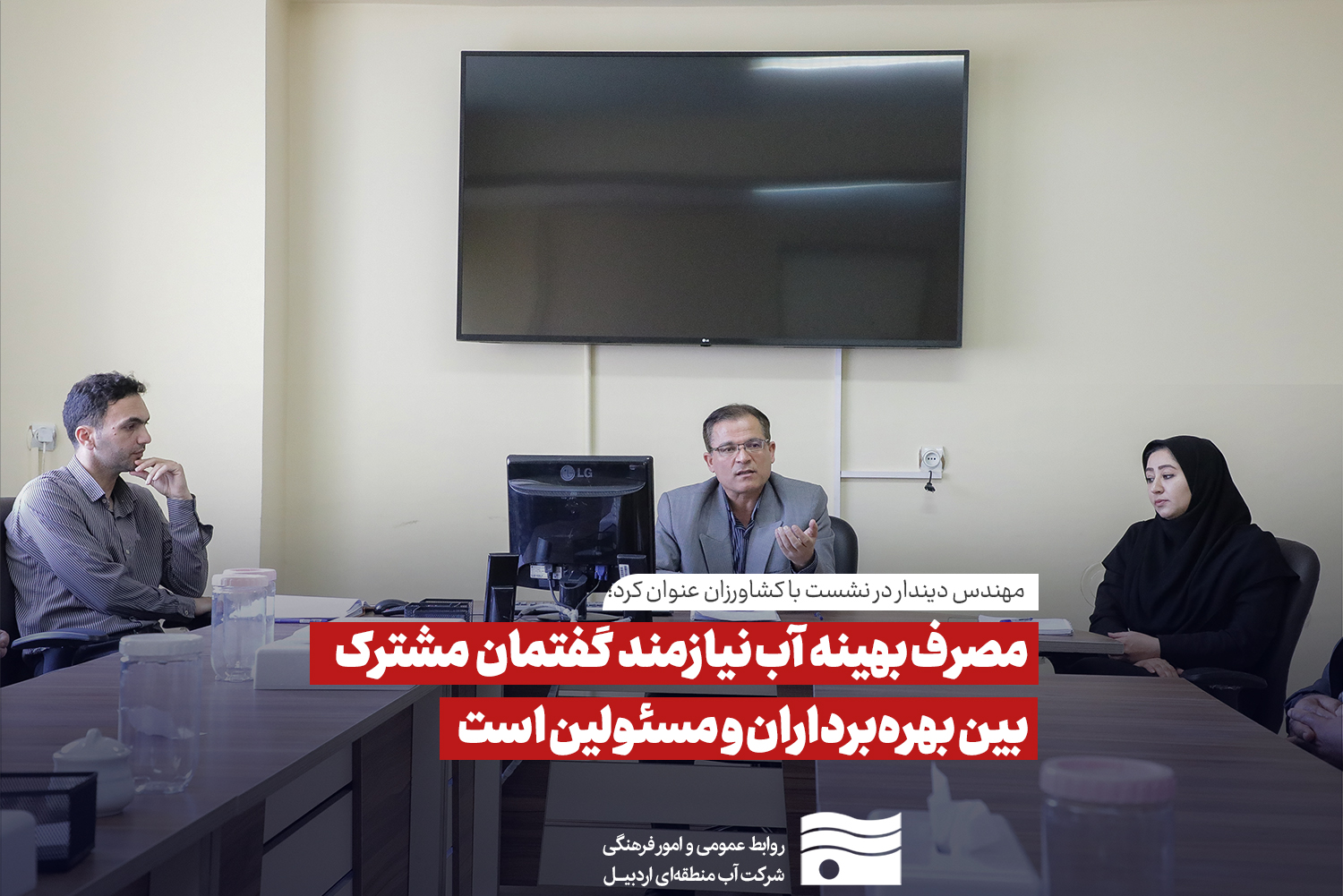 وی در پایان گفت: مدیریت مصرف بهینه آب نیاز به گفتمان و همکاری متقابل بین بهرهبرداران و مسئولان دارد.