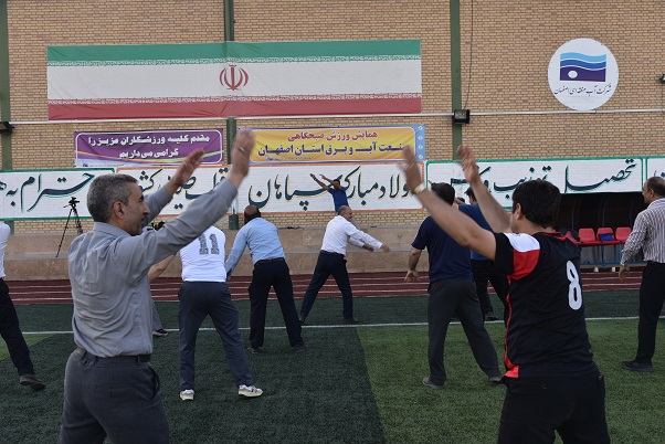 به گزارش روابط عمومی شرکت آب منطقه ای اصفهان، امروز سی و یکم خردادماه، آقایان شاغل در شرکت های آب منطقه ای، برق منطقه ای، شرکت های توزیع برق استان و شهرستان، نیروگاه اصفهان، نیروگاه شهید منتظری و آب و فاضلاب استان اصفهان در محل باشگاه شرکت آب منطقه ای اصفهان به اجرای حرکات ورزشی پرداختند.
