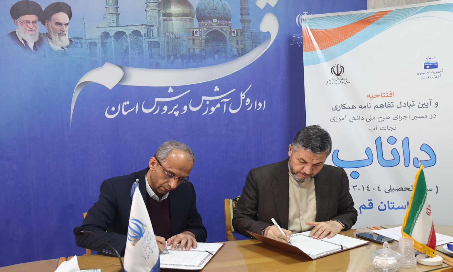 به گزارش شبکه خبری آب ایران به نقل از روابط عمومی شرکت آب منطقهای قم، در راستای آموزش و فرهنگسازی در زمینه مدیریت مصرف آب با هدف اجرای هرچه مؤثرتر طرح دانشآموزی نجات آب (داناب)، در جلسهای با حضور مدیرکل آموزش و پرورش و مدیر عامل شرکت آب منطقهای قم تفاهم نامه داناب به امضا رسید.