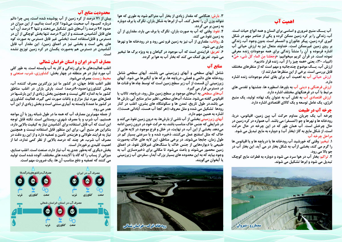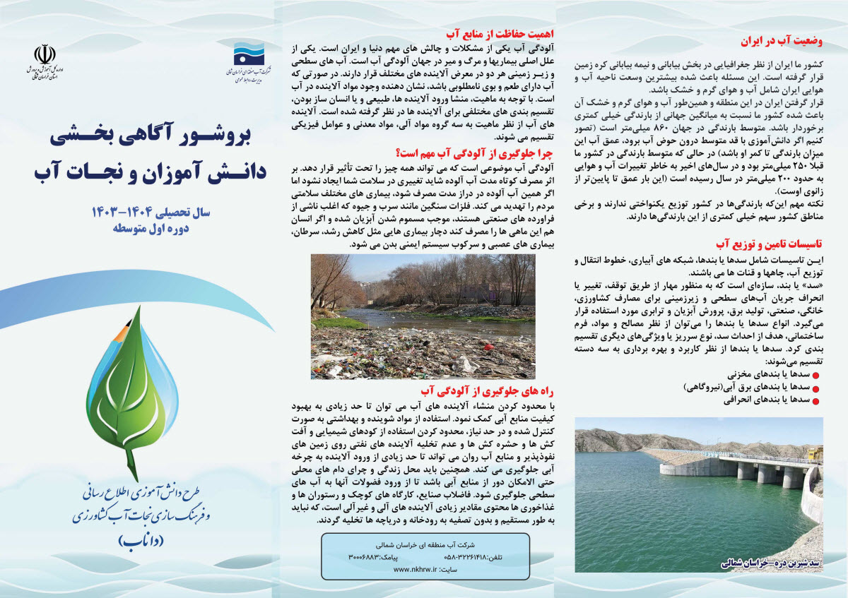 به گزارش شبکه خبری آب ایران به نقل از پایگاه اطلاع رسانی شرکت آب منطقهای خراسان شمالی، این اقلام شامل بروشور آموزشی دانش آموزان به تعداد ۴۸ هزار برگ برای پوشش و توزیع بین کل دانش آموزان دوره اول متوسطه استان، پوستر اطلاع رسانی طرح داناب برای کل آموزشگاههای دوره اول متوسطه و لوح فشرده (سی دی) حاوی موشن گرافی و پویانمایی و تیزر و نماهنگ کمک آموزشی برای کل معلمان رابط آموزشگاههای دوره اول متوسطه خراسان شمالی است.