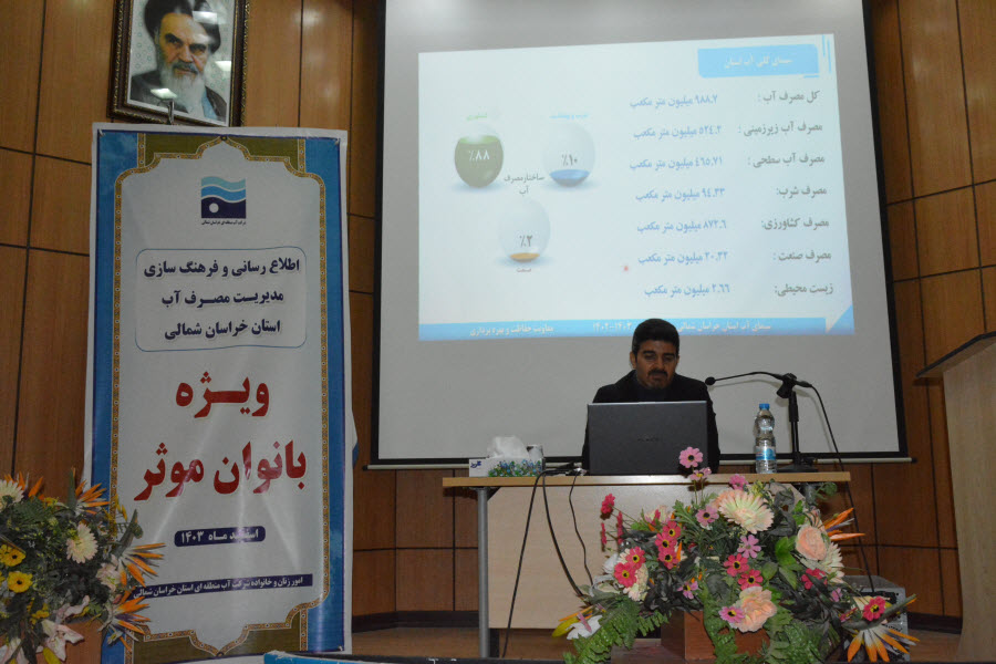 به گزارش شبکه خبری آب ایران به نقل از پایگاه اطلاع رسانی شرکت آب منطقه ای خراسان شمالی، نشست تبیین نقش بانوان مؤثر در مدیریت مصرف آب با محوریت اطلاعرسانی و فرهنگسازی عمومی در راستای تبیین سیاستهای طرح احیا و تعادل بخشی منابع آب برگزار شد.