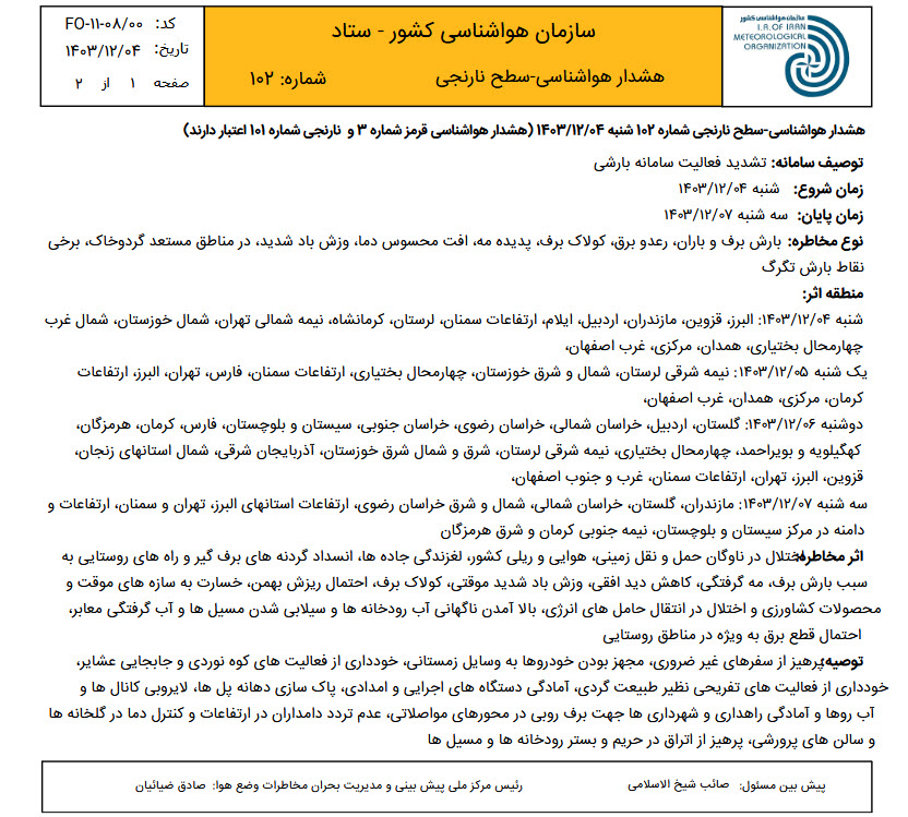 باتوجه به پیشبینی اعلام شده از سوی سازمان هواشناسی کشور مبنی بر احتمال وقوع سیلاب در خراسان شمالی، لازم است شهروندان و مسافران برای مراقبت از جان خود و عزیزانشان از نزدیک شدن به حریم رودخانهها و مخازن سدها و بندها خودداری کنند.