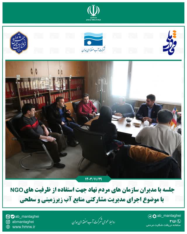 به گزارش شبکه خبری آب ایران به نقل از روابط عمومی شرکت آب منطقهای همدان، مرتضی احمدی رحمت معاون حفاظت و بهره بردای این شرکت در جلسه کارگروه استقرار مدیریت مشارکتی که با حضور سازمانهای مردم نهاد در حوزه کشاورزی برگزار شد، گفت: استفاده از ظرفیت مردم در جهت پیشبرد طرحها بسیار راه گشا بوده و بدون جلب همکاری و رضایت مردم کاری از پیش نخواهد رفت.