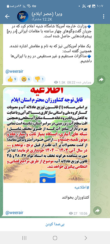 بدیهی است در صورت مشاهده هرگونه تخلف، مطابق با مواد ۲۷، ۲۸ و ۴۵ قانون توزیع عادلانه آب، موضوع از طریق مراجع قضایی و انتظامی پیگیری خواهد شد.»