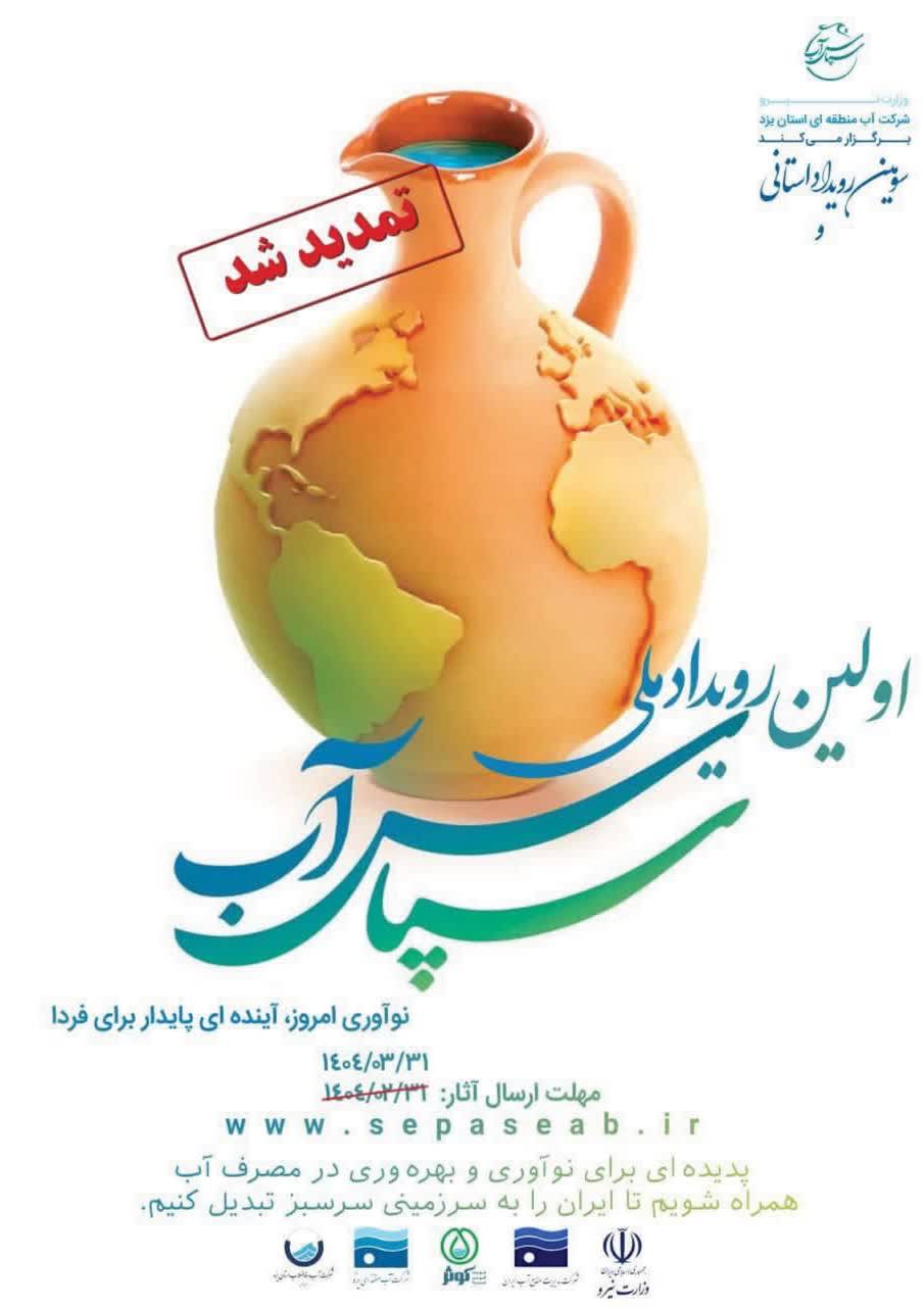 گفتنی است مهلت ارسال آثار به این رویداد تا ۳۱ خردادماه ۱۴۰۴ تعیین شده و علاقهمندان میتوانند از طریق پایگاه اینترنتی www.sepaseab.ir نسبت به تکمیل فرم معرفی طرح و ارسال مدارک اقدام نمایند.