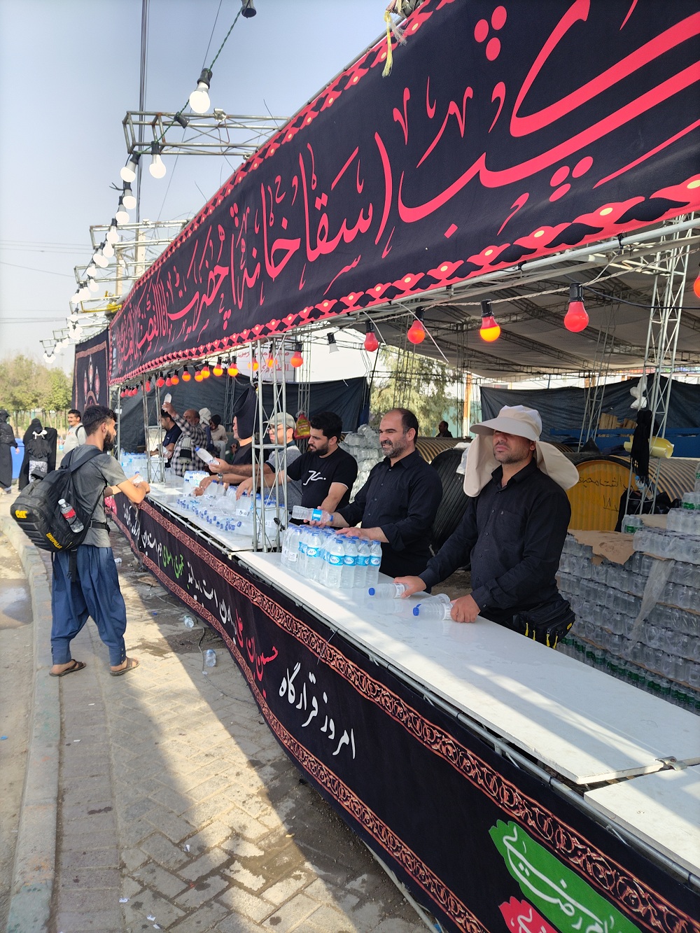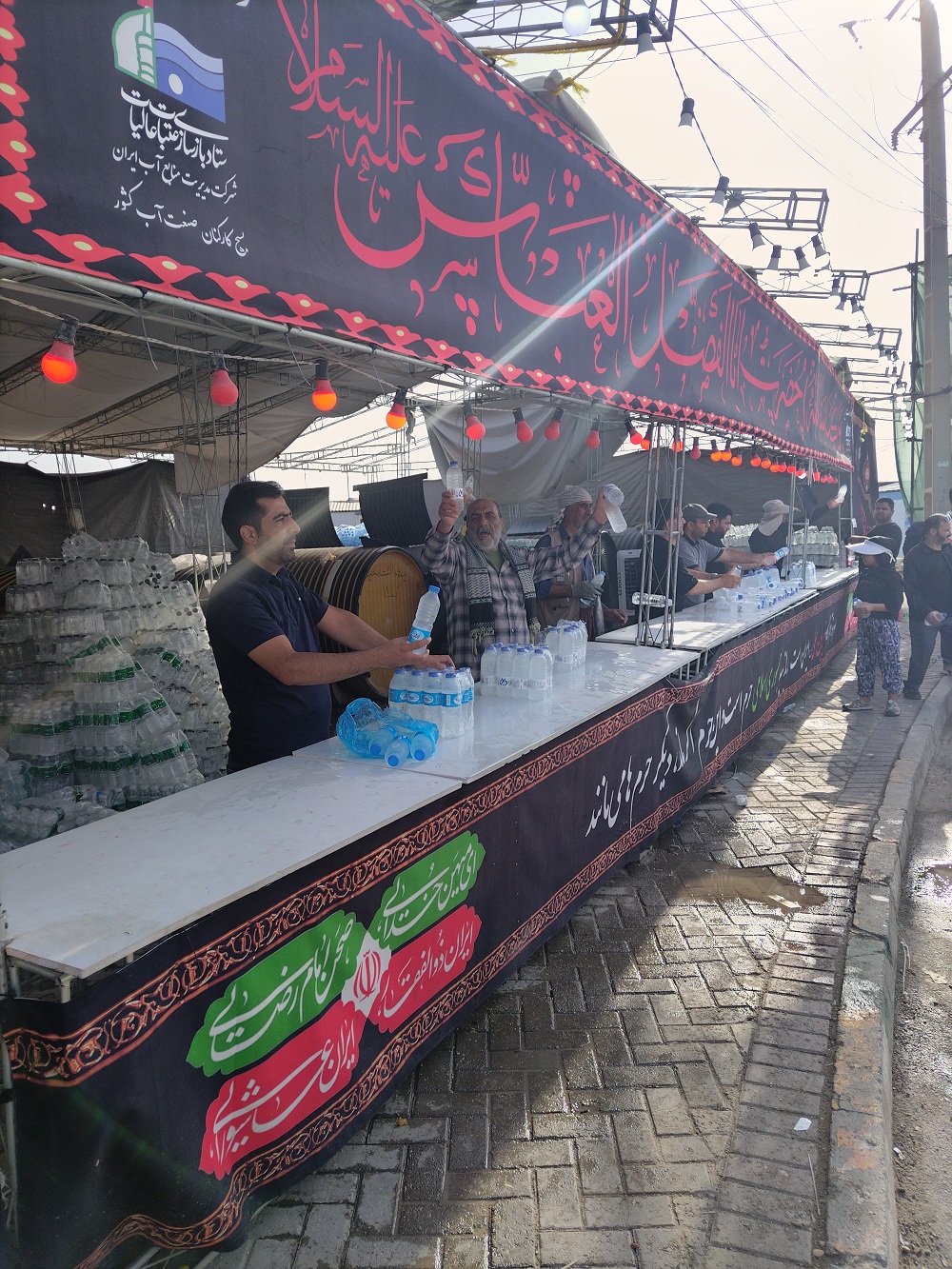 توزیع آب در این موکب به زائران این امکان را میدهد که در طول مسیر پیادهروی خود به راحتی به آب شرب مورد نیاز دسترسی داشته باشند و با آرامش بیشتری در ایام اربعین حضور یابند.