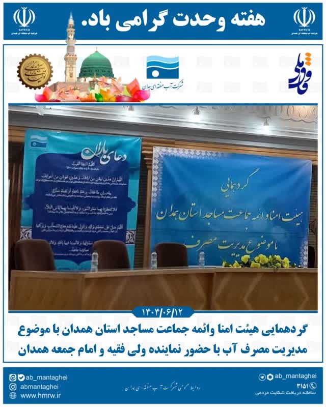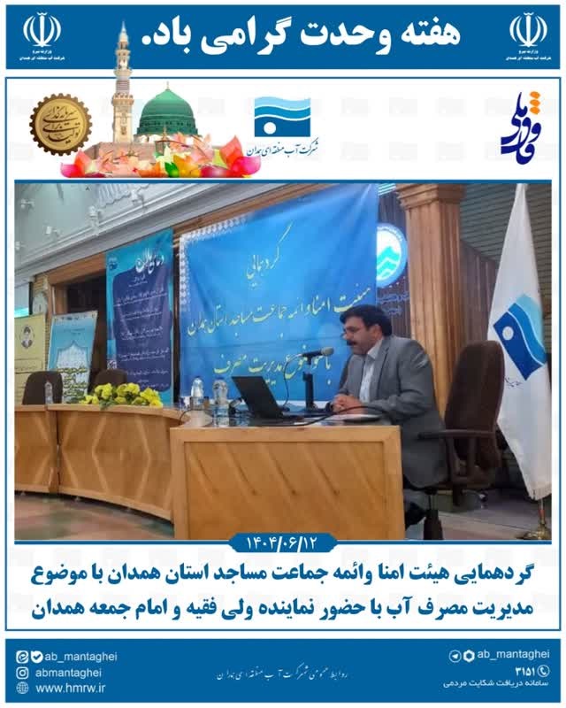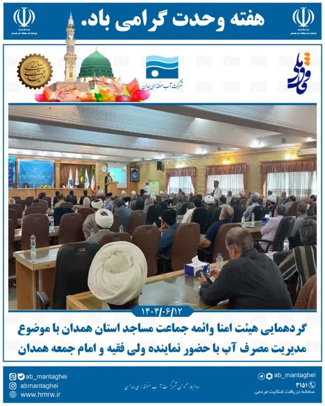 به گزارش شبکه خبری آب ایران به نقل از روابط عمومی شرکت آب منطقهای همدان، آیتالله حبیبالله شعبانی موثقی در گردهمایی ائمه جماعات و هیات امنا مساجد استان همدان گفت: موضوع «اصلاح الگوی مصرف» در حوزه آب، برق و سایر منابع حیاتی بهعنوان یک ضرورت ملی مورد تأکید قرار گرفت.