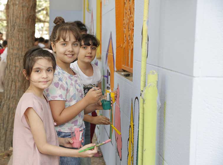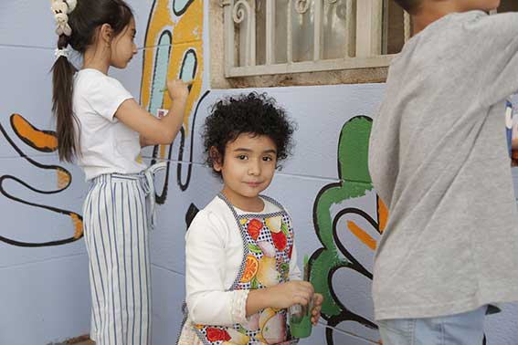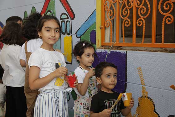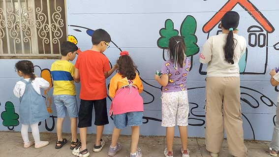 بخش پایانی پویش به نقاشی دیواری مشارکتی اختصاص داشت؛ جایی که کودکان، خانوادهها و مربیان در کنار هم تصویری از «قطرههای نجاتبخش» خلق کردند.