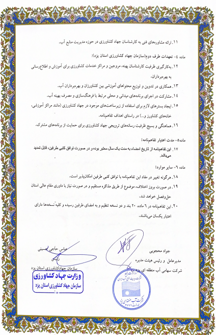 این تفاهمنامه با تأکید بر ضرورت مدیریت علمی مصرف آب در بخش کشاورزی، زمینهساز همکاری گستردهتر برای کاهش برداشتهای غیرضروری و تقویت پایداری منابع آبی در می باشد.