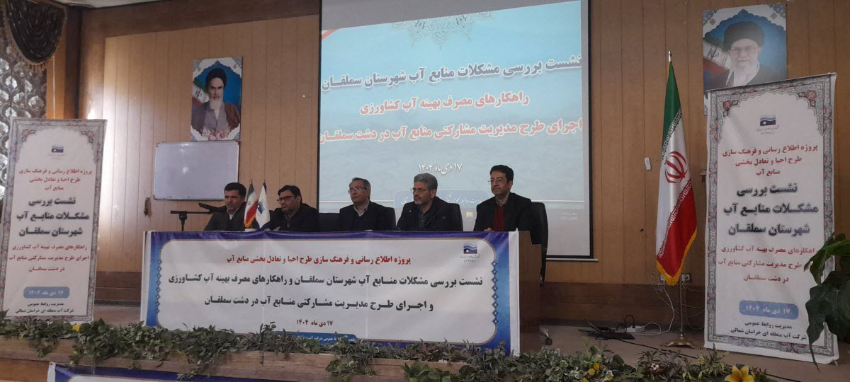 به گزارش شبکه خبری آب ایران به نقل از پایگاه اطلاعرسانی شرکت آب منطقهای خراسان شمالی، نشست اطلاعرسانی و فرهنگسازی مدیریت بهینه منابع آب ویژه کشاورزان و بهرهبرداران شهرستان سملقان در خراسان شمالی با حضور نمایندگان چاهداران این شهرستان و مسئولان استانی و شهرستانی مرتبط با منابع مدیریت منابع آب روز هفدهم دی ماه برگزار شد.